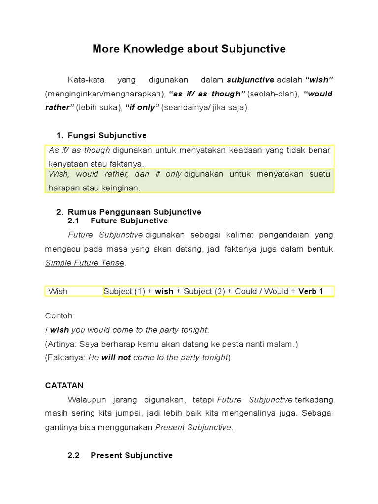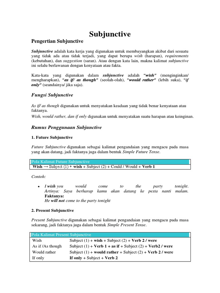 Apakah kalian sudah pernah mendengar istilah present subjunctive wish? Contoh kalimat yang menggunakan rumus to be adalah: This time i would like to post about subjunctive. Berikut contoh kalimat bahasa inggris simple present tense baca juga: Arti in a nutshell, contoh kalimat, dan cara penggunaannya.